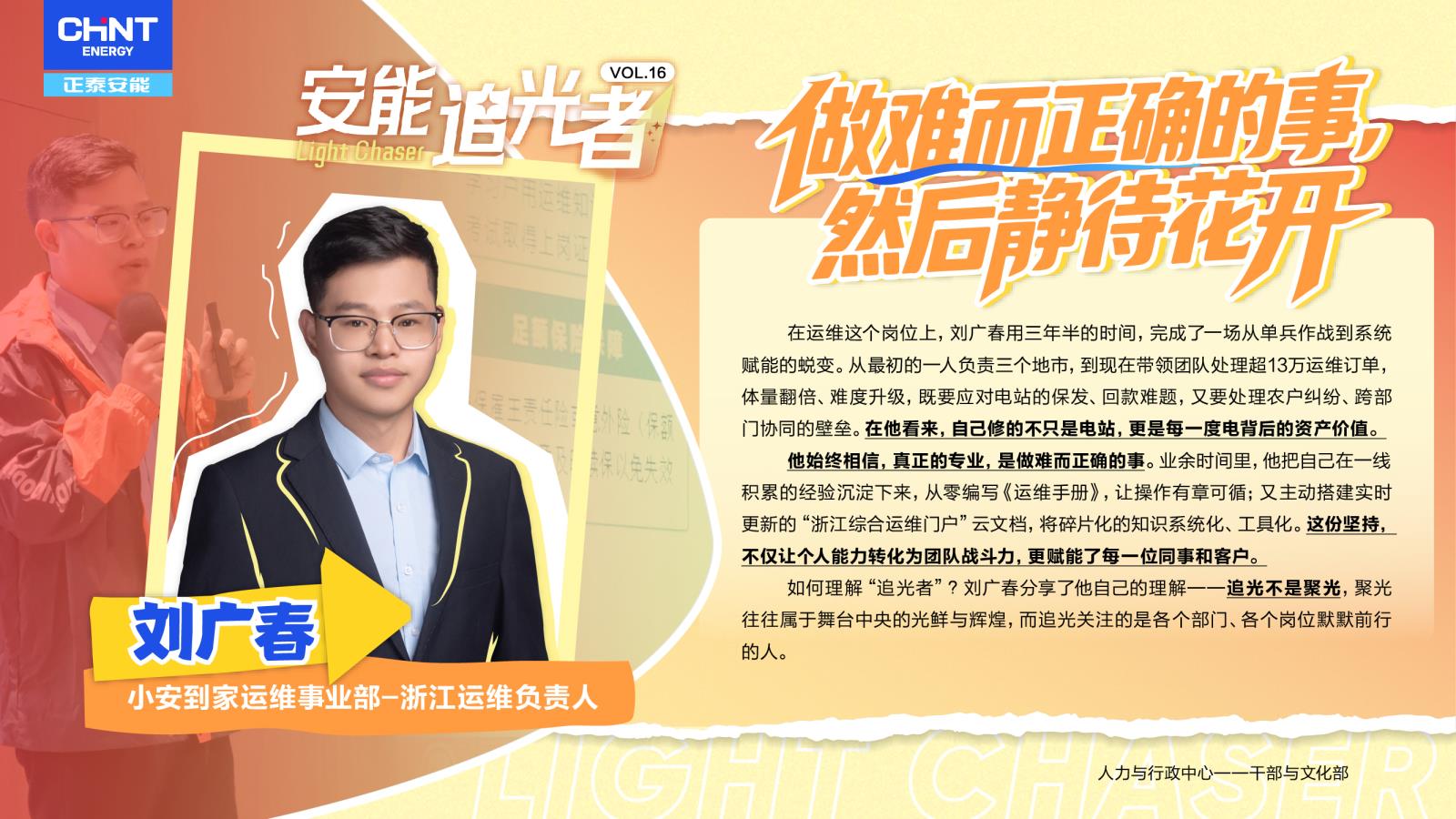 在光伏星事业部河南办事处近四年的时光里,他用一次次坚定的选择、一个个扎实的行动,诠释了什么是“稳得住”的责任与担当。