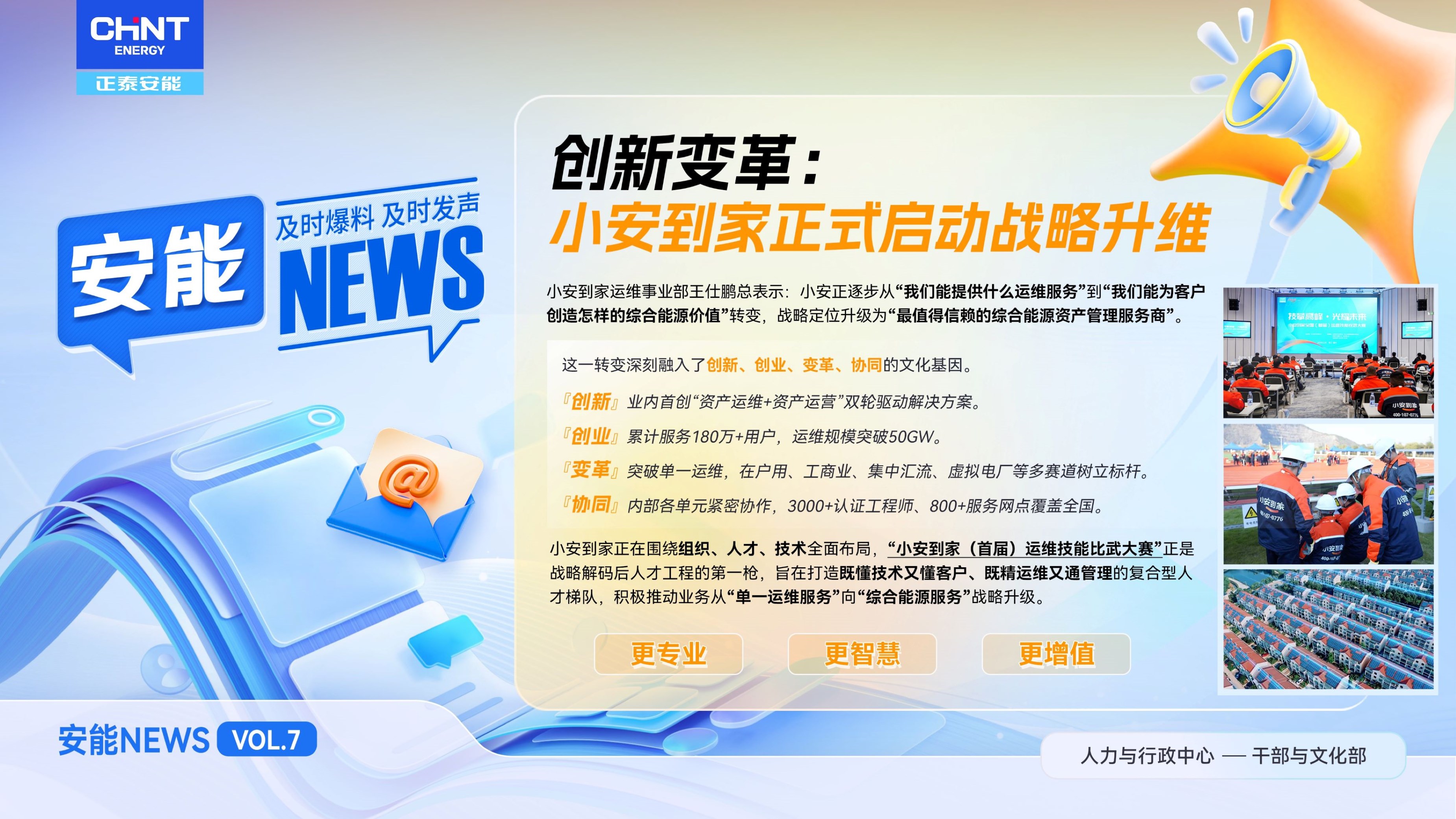 在“双碳”战略的浪潮中,小安到家以创新为笔、以专业为刃,不止于守护每一座电站,更致力于推动业务从“单一运维服务”向“综合能源服务”的战略升级。