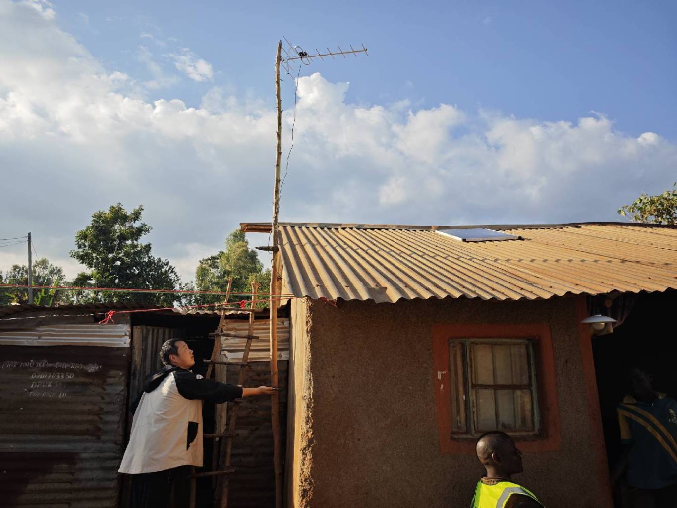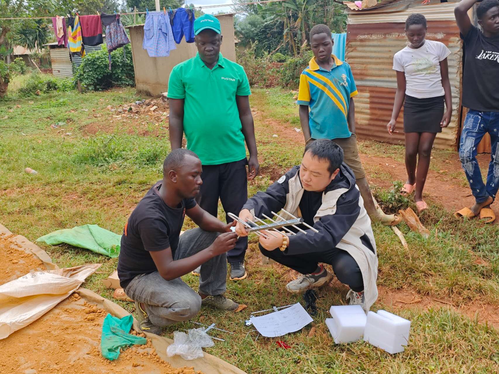 考虑到当地售后服务体系薄弱、专业操作标准缺失的现状,售后服务部张政主动扛起责任,前往基苏木(Kisumu)客户家中,手把手示范标准安装流程与调试产品。从设备固定的角度、线路连接的顺序,到故障排查的方法,每一个步骤都细致讲解、反复演示,确保当地团队能看懂、学会。