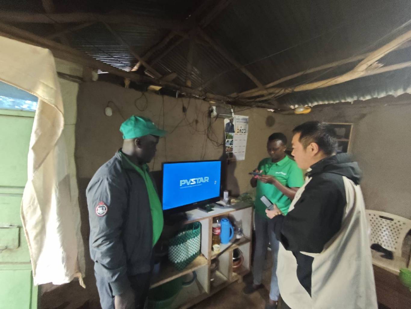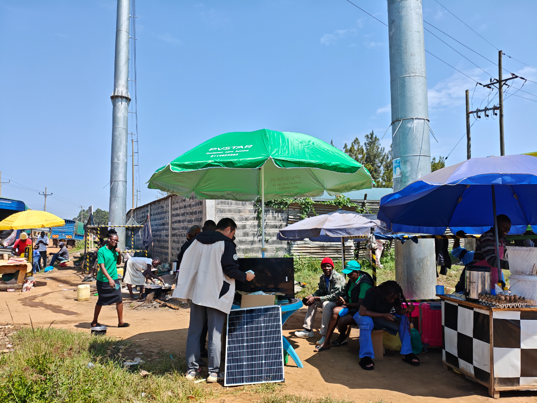 团队成员刘金、韩书侠、欧植文与当地经销商一起,深入米戈里(Migori)地区开展营销路演活动。为了让更多客户了解我们的产品,他们与6名当地销售代理一道,拿着小型光伏系统,分散到附近居民家中进行演示讲解。